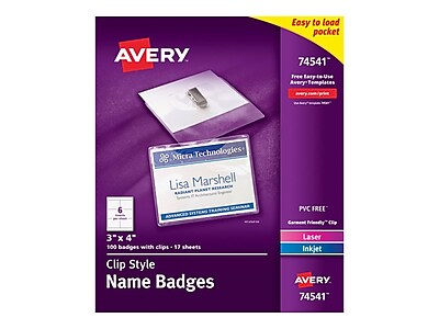 Avery 74536 Garment Friendly Clip Style Name Badges 3 X 4 Inches White